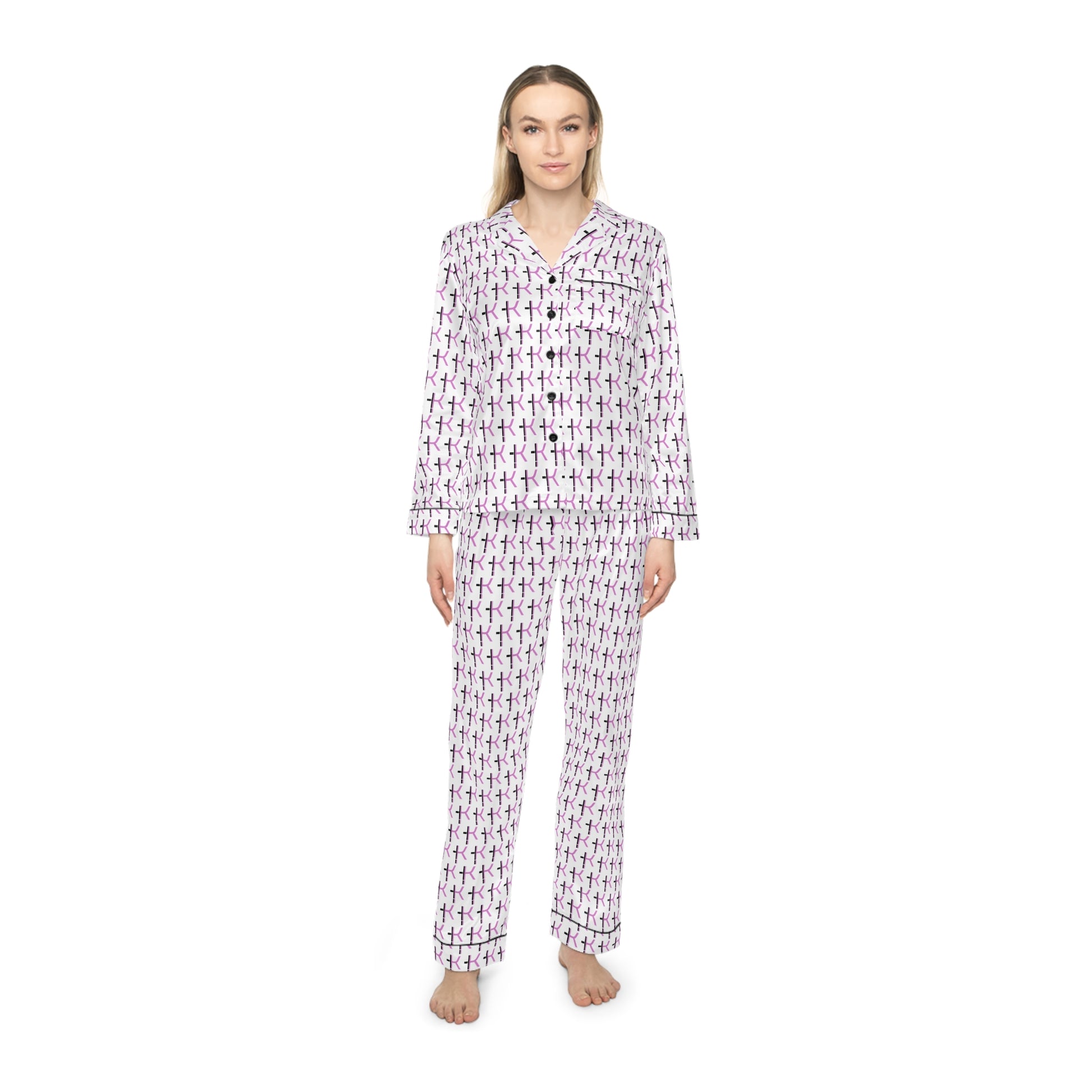 Elegant Women's Satin Pajamas Set - Soft Purple Patterned Sleepwear