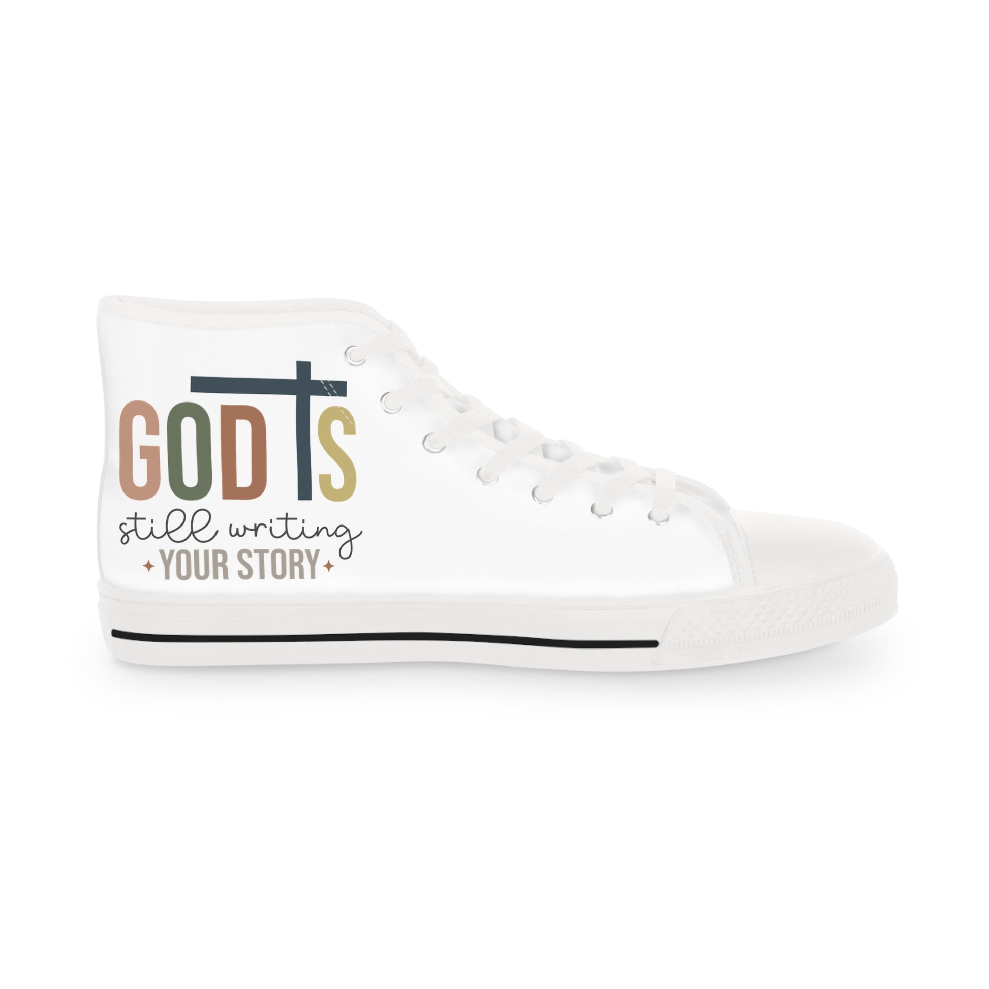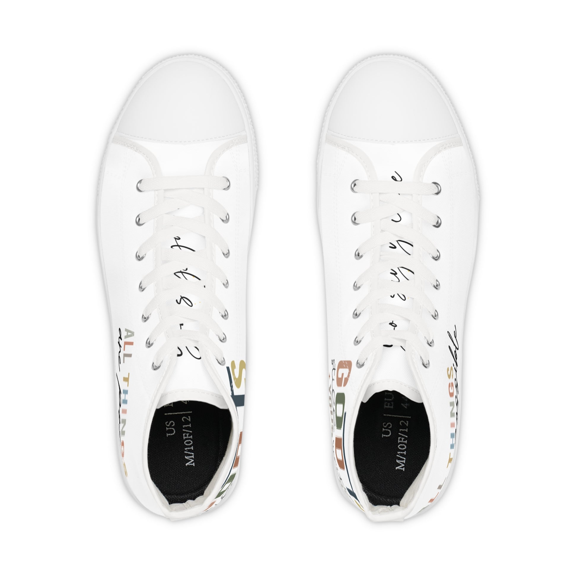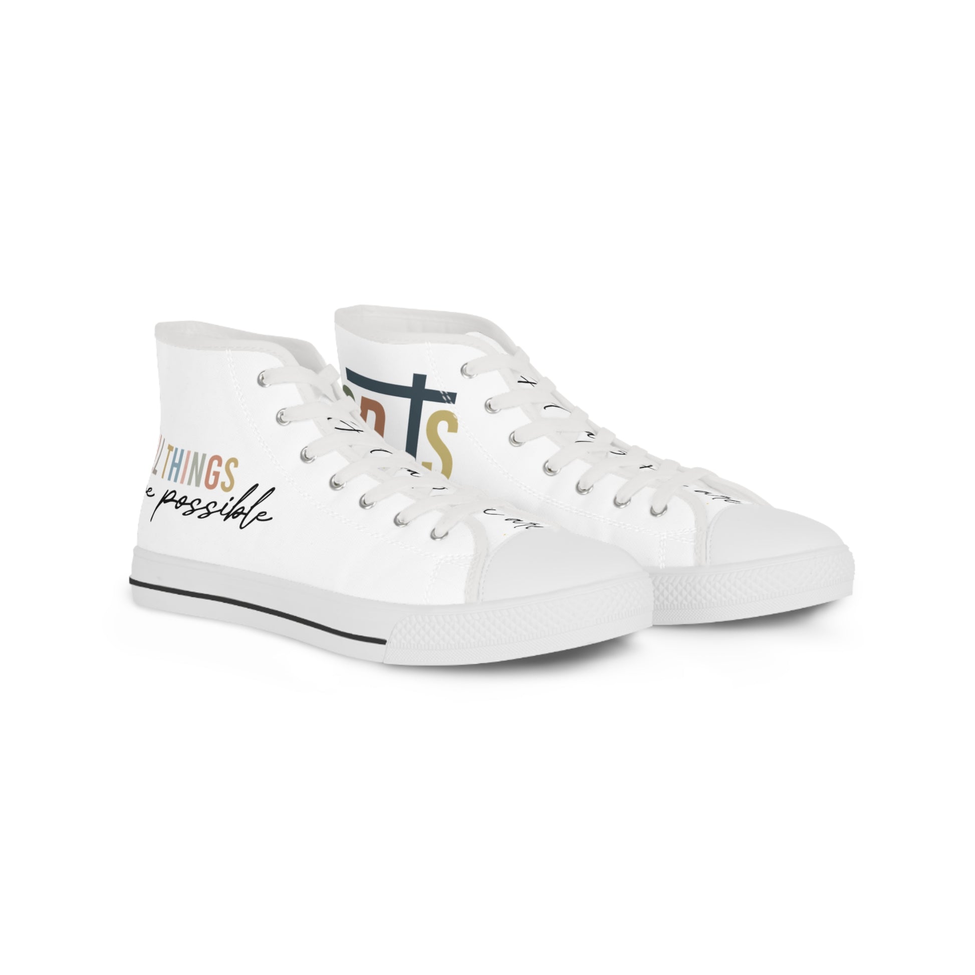 Made with breathable polyester canvas and featuring hi-poly deodorant memory foam insoles, these high top sneakers for men bear all the marks of an awesome shoe. Choose between black or white sole and laces, and enjoy the silver metal eyelets along with the lace-up closure. Add your designs and bring a bespoke staple to life.